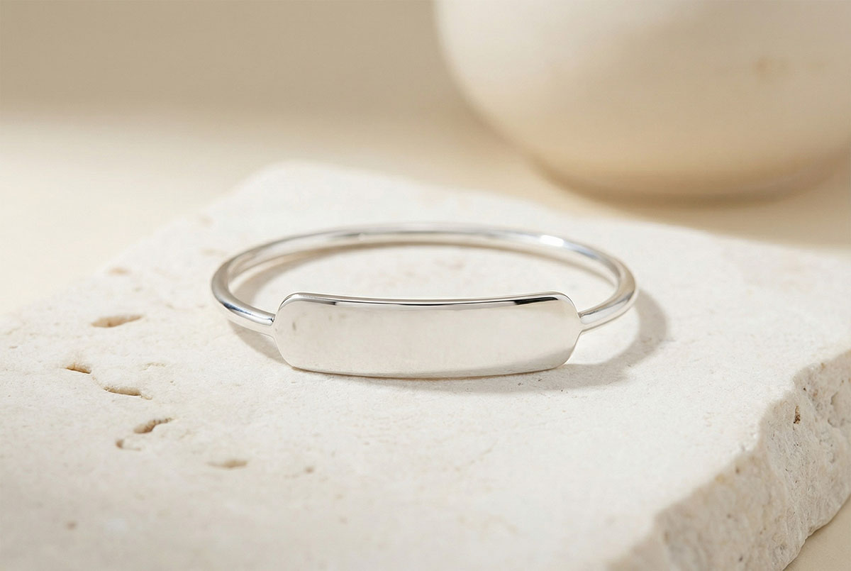 Bague médaillon rectangle à graver - Or blanc 9 carats