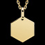 Cette médaille hexagonale est réalisée en or jaune 9 carats, offrant un éclat chaleureux et durable. Son design épuré met en valeur la pureté du métal précieux. Personnalisez ce pendentif avec une gravure issue de la sélection Edenly, pour un bijou unique qui raconte vos souvenirs et vos moments forts. Légère et délicate, cette médaille est idéale pour un cadeau symbolique ou pour marquer une étape importante de la vie. Ce bijou est livré sans chaîne.… Voir plus Infos techniques