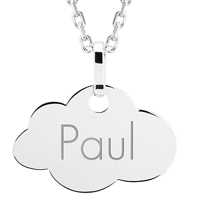 Médaille nuage gravée - or blanc 9 carats - Collection Lovely Yours - Edenly Yours