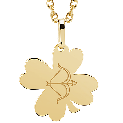 Médaille trèfle gravée - Sagittaire - Or jaune 9 carats