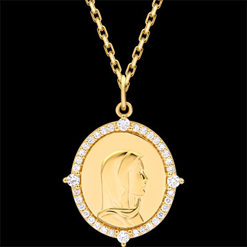 Médaille de baptême ovale Vierge Marie sertie – Or jaune 9 carats et diamants de synthèse