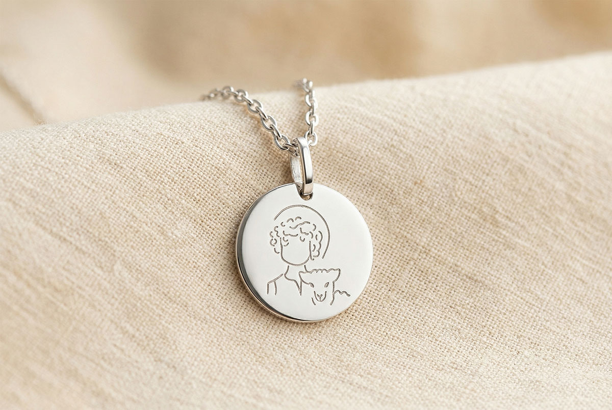 Une médaille de l'Enfant & l'Agneau délicatement dessinée par Edenly.