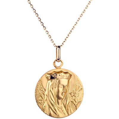 Médaille Vierge couronnée 20mm - or jaune 18 carats