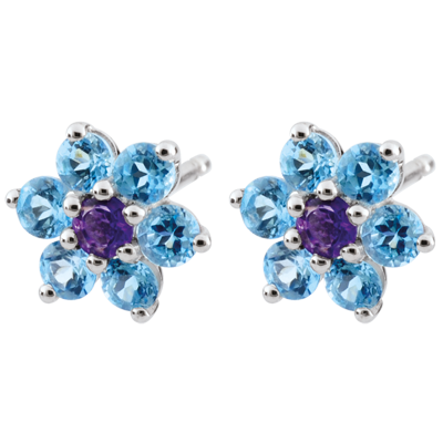 OISEAU DE PARADIS Nº 17Puces Fleurs - Or blanc 9 carats - Améthyste, Topaze bleue ID : 2366 4.7 (10)