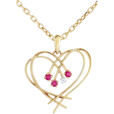 Pendentif Coeur étincelles - diamant et rubis - or jaune 9 carats