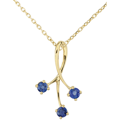 Une myriade de saphirs en mouvement est figée dans l'or jaune. Livré sans chaîne. Or jaune (9 carats = 375/1000): 0.4 g. Saphir bleu : 3 - Total: 0.38 carat Plus dimensions