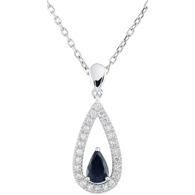 Pendentif goutte Soraya - saphirs et diamants - or blanc 9 carats