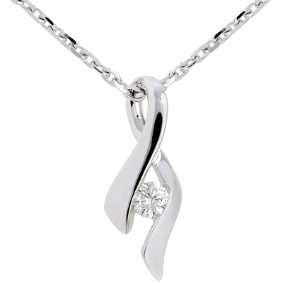 La double boucle parfaite de l'infini, symbole du nomber d'or et de l'équilibre idéal, couronné d'un diamant. Livré sans chaîne. 1 diamant : 0.13 carat - Or blanc (9 carats = 375/1000): 1 g. Plus dimensions