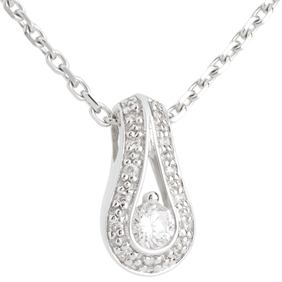 Un motif chargé de sensualité et de fluidité, pour mettre un exergue un diamant de centre sur un pavage délicat. Livré sans chaîne. 14 diamants : 0.22 carat - Or blanc (18 carats = 750/-): 1 g.Plus dimensions