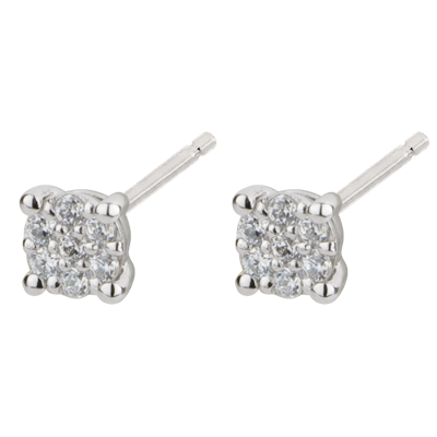 Une myriade de diamants tels des étoiles en rendez-vous forme un solitaire audacieux qui se décline sur chaque boucle d'oreilles. 14 diamants : 0.07 carat - Or blanc (18 carats = 750/-): 0.7 g. Cluster de diamants naturels : 14 - Total: 0.07 caratPlus dimensions