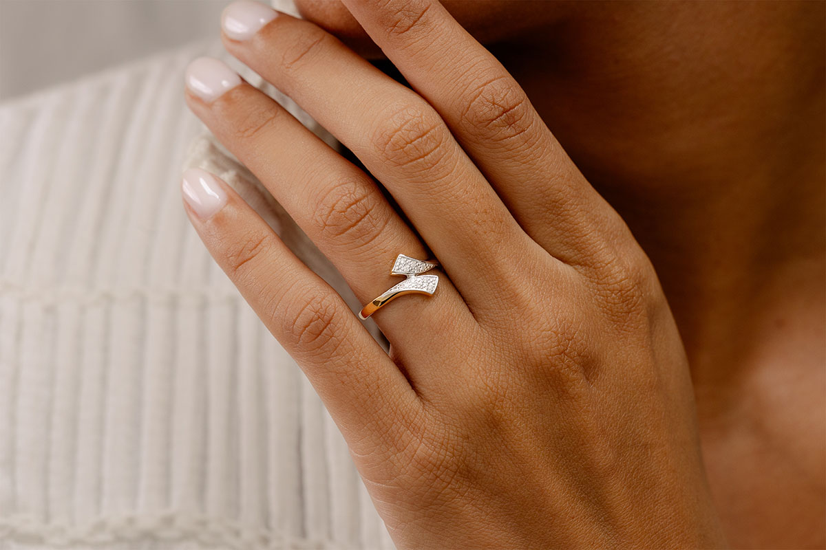 Une monture tout en mouvement, associée au raffinement d'un pavage 10 diamants.