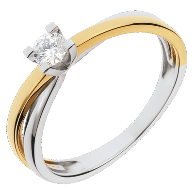 Solitaire Duetino - diamant 0.17 carat - or blanc et or jaune 18 carats