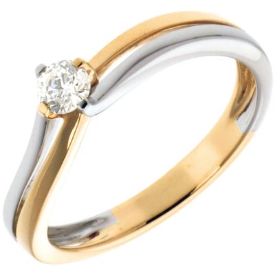 Solitaire Sillon - diamant 0.19 carat - or blanc et or jaune 18 carats