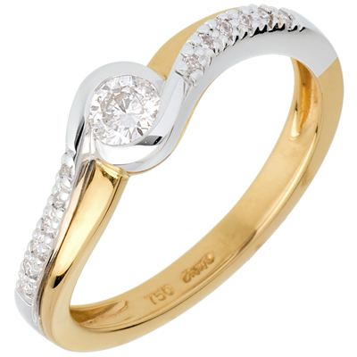 Solitaire Verseau pavé - diamant 0.24 carats - or blanc et or jaune 18 carats