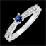 La bague comporte un saphir solitaire de 0,14 carat et dix diamants totalisant 0,052 carat.