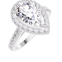 Bague Or blanc 9 carats - Diamant Poire 1 carat - Halo Diamant - Sertissage Diamant