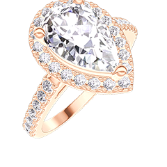 Bague Or rose 18 carats - Diamant synthétique Poire 1 carat - Halo Diamant synthétique - Sertissage Diamant synthétique