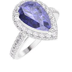 Bague Or blanc 18 carats - Saphir synthétique Poire 1 carat - Halo Diamant synthétique - Sertissage Diamant synthétique