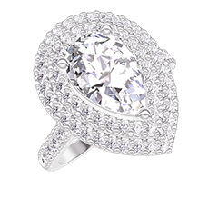 Pourquoi nous faire confiance ? « L'ATELIER » Nº 1344550 Bague Or blanc 9 carats - Diamant synthétique Poire 1 carat - Halo Diamant synthétique - Sertissage Diamant synthétique