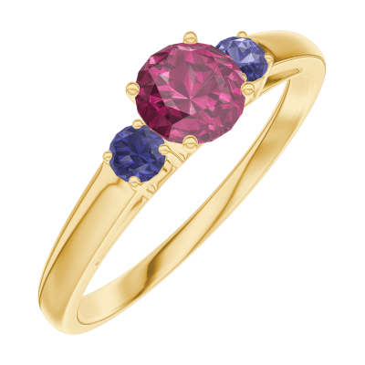 « L'ATELIER » Nº160662Bague Or jaune 9 carats - Rubis Rond 0.3 carat - Pierres de côté Saphir bleu 4.8 (36)