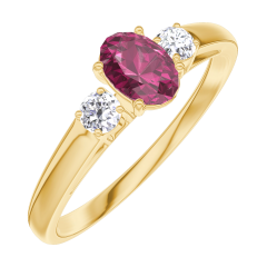 Bague Or jaune 18 carats - Rubis Ovale 0.3 carat - Pierres de côté Diamant
