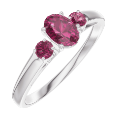 Pourquoi nous faire confiance ? « L'ATELIER » Nº 160944 Bague Or blanc 9 carats - Rubis Ovale 0.3 carat - Pierres de côté Rubis