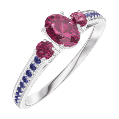 « L'ATELIER » Nº 160955Bague Or blanc 18 carats - Rubis Ovale 0.3 carat - Pierres de côté Rubis - Sertissage Saphir bleu 5 (3)