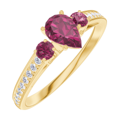 « L'ATELIER » Nº 161046Bague Or jaune 9 carats - Rubis Poire 0.3 carat - Pierres de côté Rubis - Sertissage Diamant