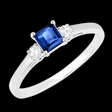« L'ATELIER » Nº 161324Bague Or blanc 9 carats - Saphir bleu Princesse 0.3 carat - Pierres de côté Diamant