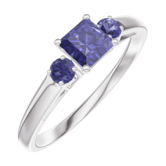 « L'ATELIER » Nº 161363Bague Or blanc 18 carats - Saphir bleu Princesse 0.3 carat - Pierres de côté Saphir bleu