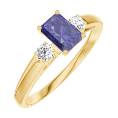 Bague Or jaune 18 carats - Saphir bleu Rectangle 0.3 carat - Pierres de côté Diamant