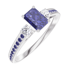 « L'ATELIER » Nº 161436Bague Or blanc 9 carats - Saphir bleu Rectangle 0.3 carat - Pierres de côté Diamant - Sertissage Saphir bleu
