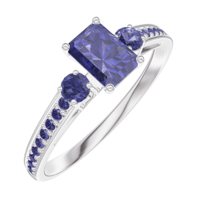 « L'ATELIER » Nº161475Bague Or blanc 18 carats - Saphir bleu Rectangle 0.3 carat - Pierres de côté Saphir bleu - Sertissage Saphir bleu