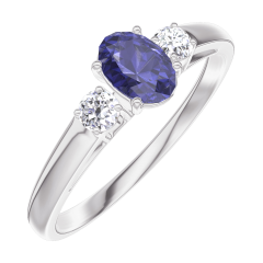 Bague Or blanc 18 carats - Saphir bleu Ovale 0.3 carat - Pierres de côté Diamant