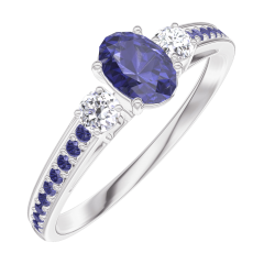 Pourquoi nous faire confiance ? « L'ATELIER » Nº 161536 Bague Or blanc 9 carats - Saphir bleu Ovale 0.3 carat - Pierres de côté Diamant - Sertissage Saphir bleu