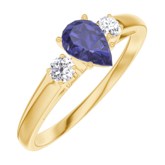 Bague Or jaune 18 carats - Saphir bleu Poire 0.3 carat - Pierres de côté Diamant