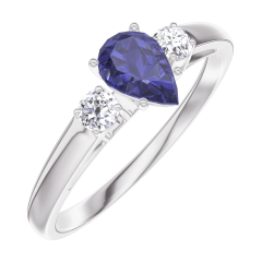 Bague Or blanc 18 carats - Saphir bleu Poire 0.3 carat - Pierres de côté Diamant