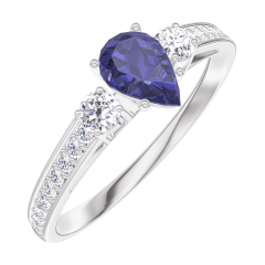 Bague Or blanc 18 carats - Saphir bleu Poire 0.3 carat - Pierres de côté Diamant - Sertissage Diamant