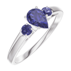 « L'ATELIER » Nº 161664Bague Or blanc 9 carats - Saphir bleu Poire 0.3 carat - Pierres de côté Saphir bleu