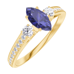 « L'ATELIER » Nº 161726Bague Or jaune 9 carats - Saphir bleu Marquise 0.3 carat - Pierres de côté Diamant - Sertissage Diamant