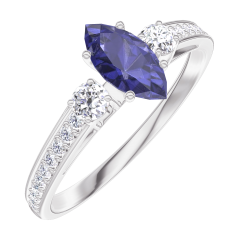 Pourquoi nous faire confiance ? « L'ATELIER » Nº 161728 Bague Or blanc 9 carats - Saphir bleu Marquise 0.3 carat - Pierres de côté Diamant - Sertissage Diamant