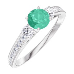 Pourquoi nous faire confiance ? « L'ATELIER » Nº 161827 Bague Or blanc 18 carats - Émeraude Rond 0.3 carat - Pierres de côté Diamant - Sertissage Diamant