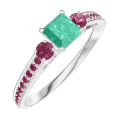 Bague Or blanc 9 carats - Émeraude Princesse 0.3 carat - Pierres de côté Rubis - Sertissage Rubis