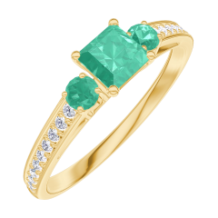 Bague Or jaune 18 carats - Émeraude Princesse 0.3 carat - Pierres de côté Émeraude - Sertissage Diamant