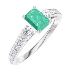 Bague Or blanc 18 carats - Émeraude Rectangle 0.3 carat - Pierres de côté Diamant - Sertissage Diamant