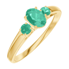 Pourquoi nous faire confiance ? « L'ATELIER » Nº 162182 Bague Or jaune 9 carats - Émeraude Ovale 0.3 carat - Pierres de côté Émeraude