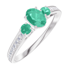 Pourquoi nous faire confiance ? « L'ATELIER » Nº 162188 Bague Or blanc 9 carats - Émeraude Ovale 0.3 carat - Pierres de côté Émeraude - Sertissage Diamant