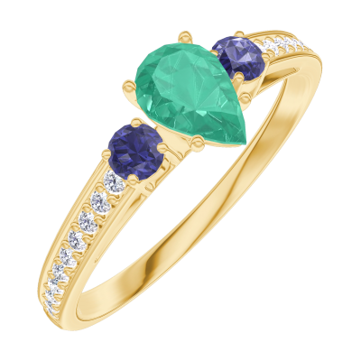 « L'ATELIER » Nº162265Bague Or jaune 18 carats - Émeraude Poire 0.3 carat - Pierres de côté Saphir bleu - Sertissage Diamant