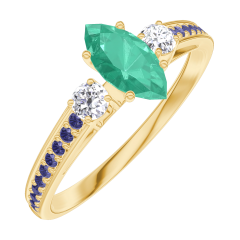 Bague Or jaune 18 carats - Émeraude Marquise 0.3 carat - Pierres de côté Diamant - Sertissage Saphir bleu