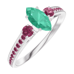 « L'ATELIER » Nº 162352Bague Or blanc 9 carats - Émeraude Marquise 0.3 carat - Pierres de côté Rubis - Sertissage Rubis